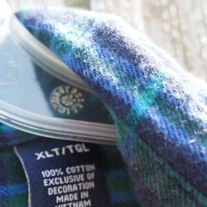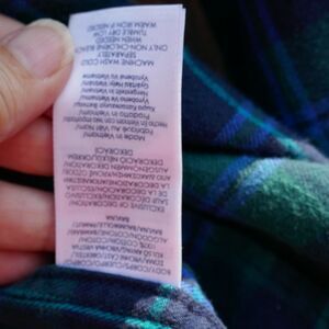 Chaps Performance button-down blue green tartan plaid cotton shirt. Long sleeves. Cotton