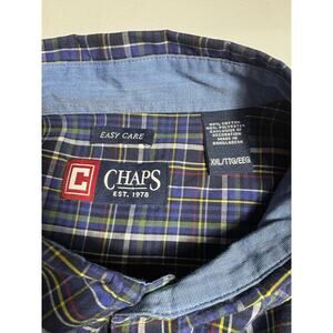 Chaps Shirt Men's 2XLT Long Sleeve Button Down Stretch Easy Care Blue Plaid