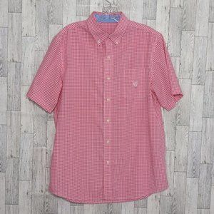 Chaps Men's Button Up Shirt Size M Pink Plaid Short Sleeve.