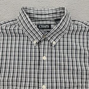 Chaps Shirt Mens XL Black White Plaid Button Down Stretch Easy Care Classiccore