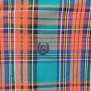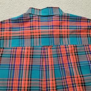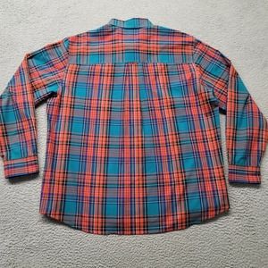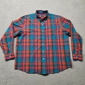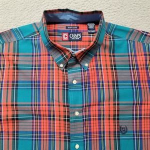 Chaps Shirt Mens XXL Blue Colorful Plaid Preppy Casual Crest Logo Easy Care