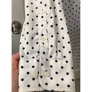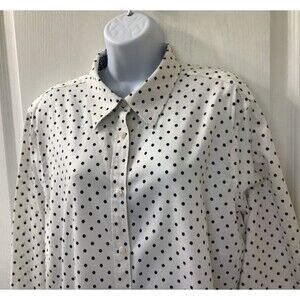 Chaps Shirt Womens 2X Button Up Flip Cuff Cotton Polka Dot Off White ***FLAW