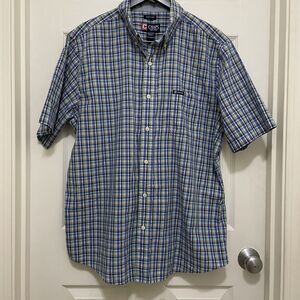 Chaps Short Sleeve Button Down Easy Care Shirt Blue Green Orange Plaid Men’s XL