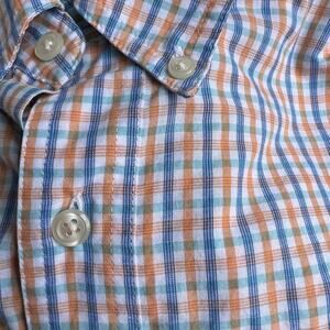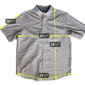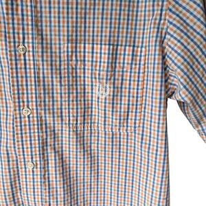 Chaps Short Sleeve Dress Shirt Men's Medium Blue and Yellow Checkered Basic Classic