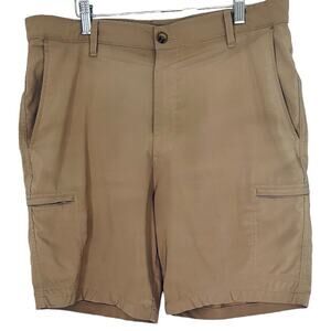 Chaps Shorts Mens Golf Cargo Size 34 Back Pockets Button Beige Zip Pockets