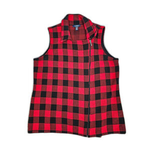 Chaps Side Zip Gingham Checkered Vest Red and Black Size 1X