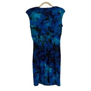 Chaps Size 8 NWT Floral Crossover Surplice Dress Blue Stretch Elegant