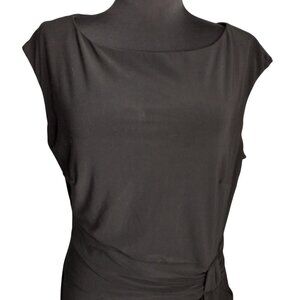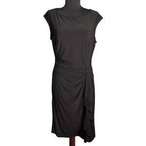 Chaps Size L Dress Sleeveless Little Black Ruched Waist Ruffle Detail