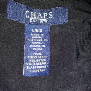 This elegant Chaps black dress features a flattering ruched waist and sophisticated ruffle detail, perfect for professional settings. The sleeveless design and comfortable fit ensure ease of movement, making it ideal for office wear. Its classic color and style provide versatility for various formal occasions.