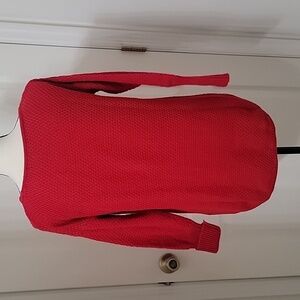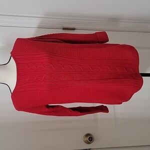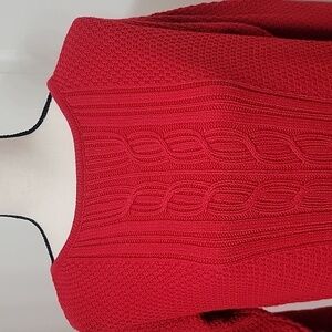 Chaps Size M Red Textured Cable-Knit Sweater, Long Sleeve, Curved Hem, EUC. Excellent Used Condition. No Holes, Rips, Stains or Snags. "A cable-knit front panel adds textural interest to this women's Chaps sweater. Cable-knit front panel. Scoopneck. Long sleeves. Ribbed trim & cuffs. Textured cotton blend." Please refer to measurements in photos to ensure proper fit.