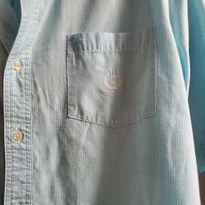 Chaps short sleeve shirt in a refreshing sky blue. Ideal for casual outings. Features a classic button-down design.