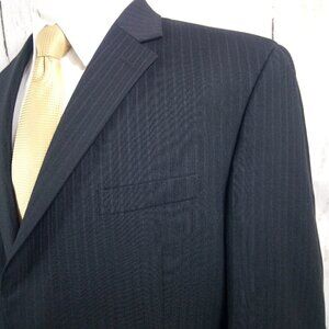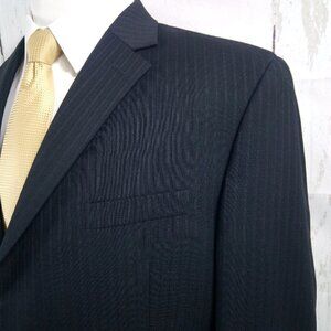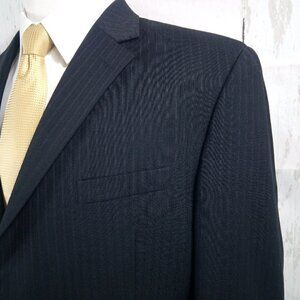 Chaps Slim Fit 46R 2 Button Black Striped Suit Blazer Sports Coat