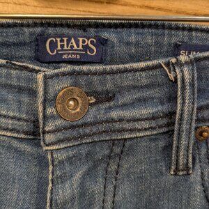 Stylish blue denim jeans by Chaps. Perfect for casual wear. Waist 16 across Inseam 30 Rise 10 6380