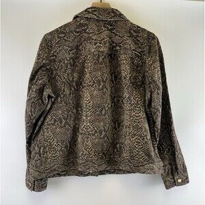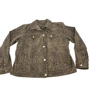 Chaps Snakeskin Python Denim Jacket Brown Button Stretch Flap Pockets Womens 1X