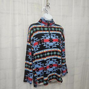 Chaps Southwestern Top Zip Turtleneck Preppy Gorp Aztec Blue Unisex L