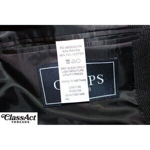 The Chaps Sport Coat is a classic men's blazer in a stylish gray checked pattern, perfect for various occasions including weddings, parties, formal events, and business settings. Made from a blend of polyester and rayon fabric, this jacket features a two-button front closure, notch lapel, inner pockets, and a single vented back. With a size 42 chest and a regular length, this jacket offers a timeless designer look with a touch of sophistication, making it a versatile addition to any man's wardrobe.
