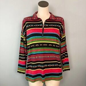 Chaps Sport Rainbow Striped Southwestern 1/4 Zip Mock Neck Shirt Women's Size M