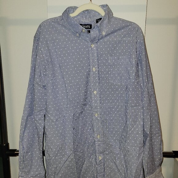 Chaps Stretch Button-Down Shirt Blue White Stripe – Men’s L