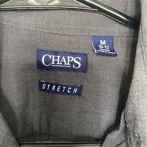 Chaps Stretch Grey Stretch Button Down Shirt Size M (10/12) HUSKY