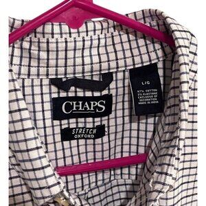 Upgrade your wardrobe with this versatile Chaps long-sleeve shirt. The stretch fabric ensures comfort and durability while the navy check pattern adds timeless style.