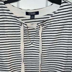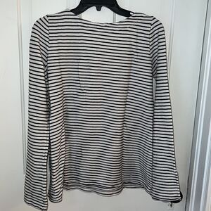 EUC Black and white striped Keyhole front with ribbon tie at neck Oversized fit