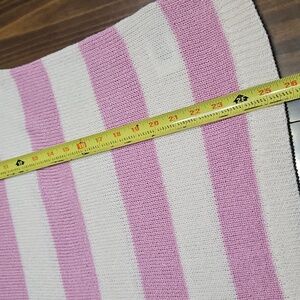 Stylish knit top with pink and white stripes. Perfect for casual wear.