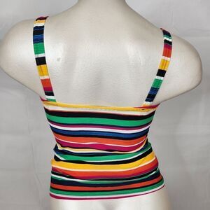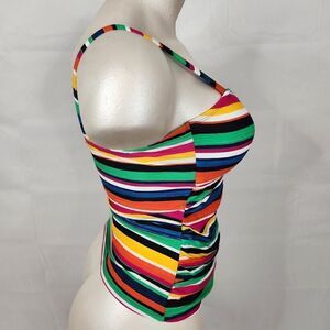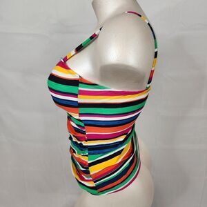 Chaps Striped Ruched Tank Tankini Swimsuit Top Sz 16