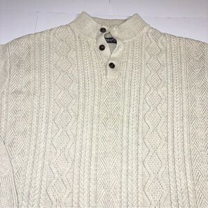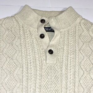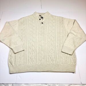 Chaps Sweater Mens 4XB Oatmeal Beige Cable Knit Cotton Mock Neck Buttons