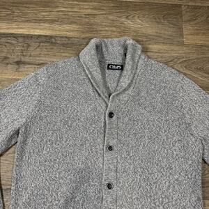 Chaps Sweater Mens Large Gray Shawl Collar Button Cardigan Knit Grandpa Classic