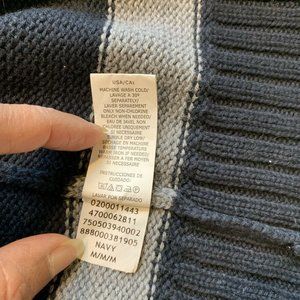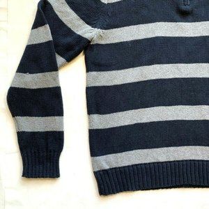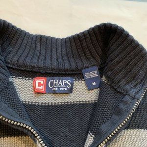 Chaps Sweater Mens Medium Striped 1/4 Zip Chunky Knit Pullover Mock Neck Cotton