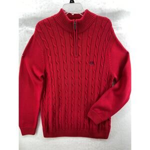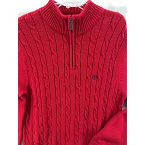 Chaps Sweater Mens Sz L Quarter Zip Red Warm Stretch High Neck Logo Long Sleeve