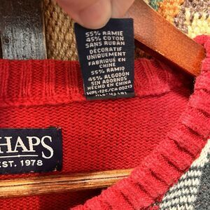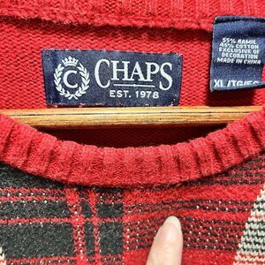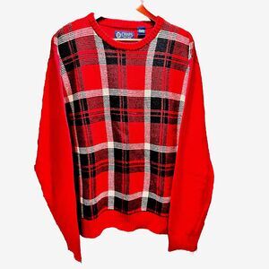Chaps Sweater Men's Sz X-Large Red Plaid Long Sleeve Crew Neck Rib Edges Knitted
