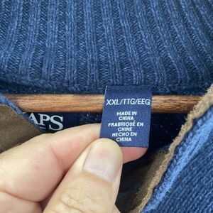 Chaps Sweater Mens XXL Blue Cotton Knit Mock Neck Faux Leather Elbow Patch