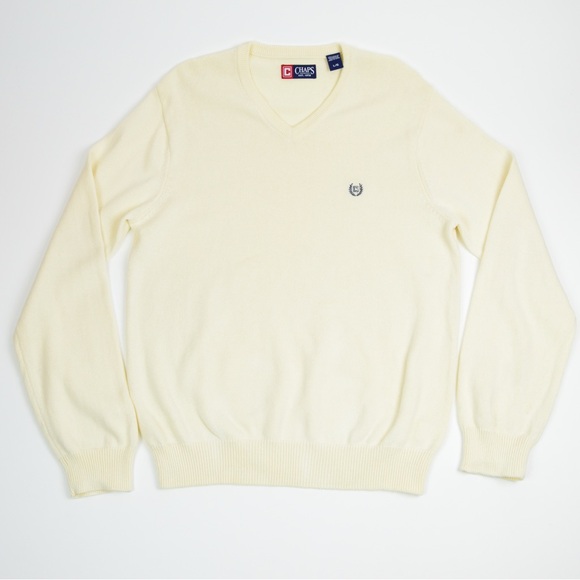 Chaps Sweater V-Neck Cream Classic Embroidered Logo Y2K Relaxed Fit Men’s Large