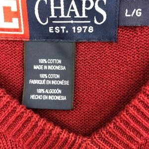 Chaps Sweater Vest Mens Large Solid Red Pullover V-Neck Sleeveless Rib Trim