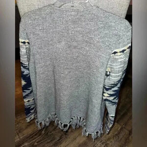 Chaps Sweater Women Large Gray Open Wrap Cardigan Fringe Tribal Aztec Breathable