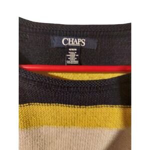 Chaps Sweater, Women's Size Medium Navy Blue Pink Yellow, Striped Bold