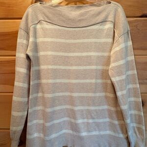 This Chaps blouse features a classic striped design in tan and white, offering a sophisticated look. The soft fabric ensures comfort, while the relaxed fit makes it perfect for casual outings. With its long sleeves and elegant style, this blouse is a versatile addition to any wardrobe.