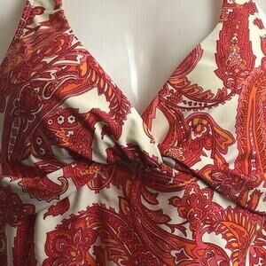 * Chaps Tankini Top Women 8 Red Floral Halter Twist Front Padded Stretch Swimwear