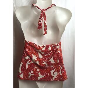 Chaps Tankini Top Women 8 Red Floral Halter Twist Front Padded Stretch Swimwear