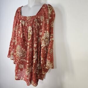Chaps Top Blouse Womens XXL Peasant Cottage Core Boho Floral Squareneck Sheer