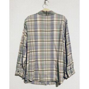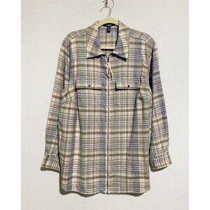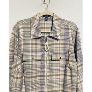 Chaps Top Womens 1X Pastel Plaid Zip Up Cotton Twill Long Sleeve Shacket Pockets