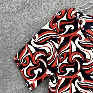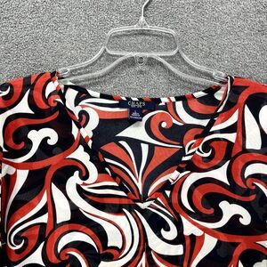 Chaps Top Womens Large Black Red White Short Sleeve Sheer V Neck Blouse