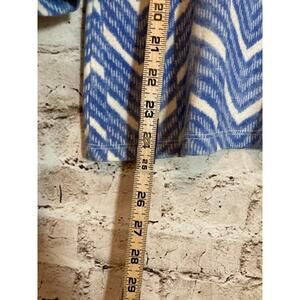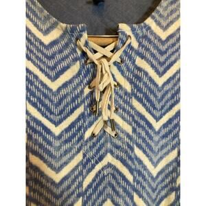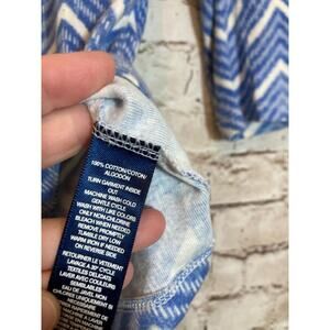 Chaps Top Womens Medium Blue Zig Zag Print Lace Up Long Sleeve Stretch Cotton