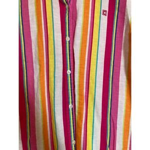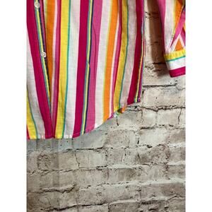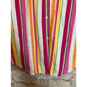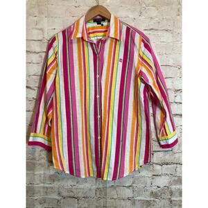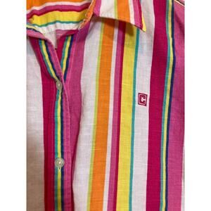 Chaps Top Womens Medium Linen Cotton Rainbow Striped Button Up Long Sleeve
