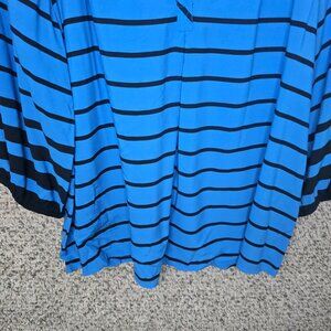 Chaps Top Womens Medium Peasant Blouse Blue Polka Dot Scoop Neck Casual