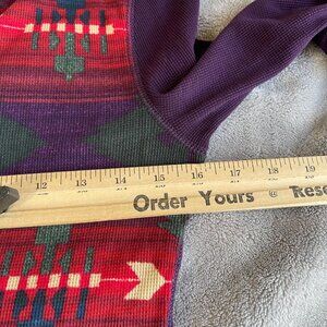 Chaps Top Womens Small Purple Colorful Aztec Print Henley Waffle Thermal Cotton