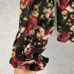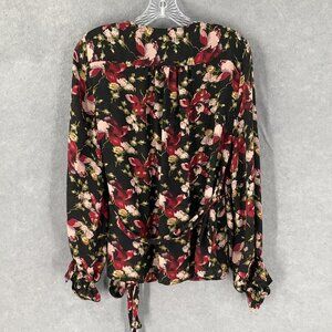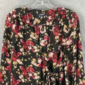 Chaps Top Womens Sz M Dark Floral Bell Sleeve Wrap Romanic Feminine Office
