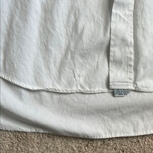 This Chaps casual button down shirt features a crisp white color, perfect for a relaxed yet polished look. The shirt is designed with a classic pointed collar and long sleeves, making it ideal for casual outings or laid-back office days. Its subtle elegance and comfortable fit make it a versatile addition to any wardrobe.