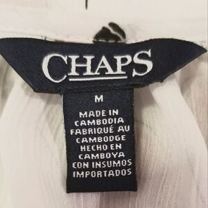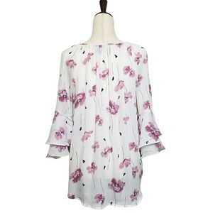 Chaps White & Pink Floral 3/4 Ruffle Sleeve Keyhole Chiffon Blouse Size M
